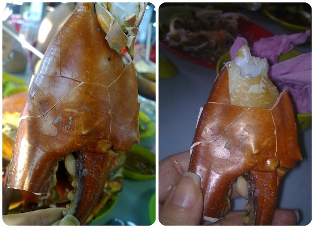 你是什么时间去的呢?我吃烧螃蟹时是六点多刚开店的时候去的,所以螃蟹都是新鲜烧烤出来的。如果你约七八点钟之后去的话,那些螃蟹可能就是烧烤了一些时间放在那里有一段时间了,可能就没那么好吃了哦!因为我三次都是不同时段去的,第三次去的时候很晚了,很多螃蟹都是放在一边不在烧烤了,味道也许没那么香醇可口咯;p